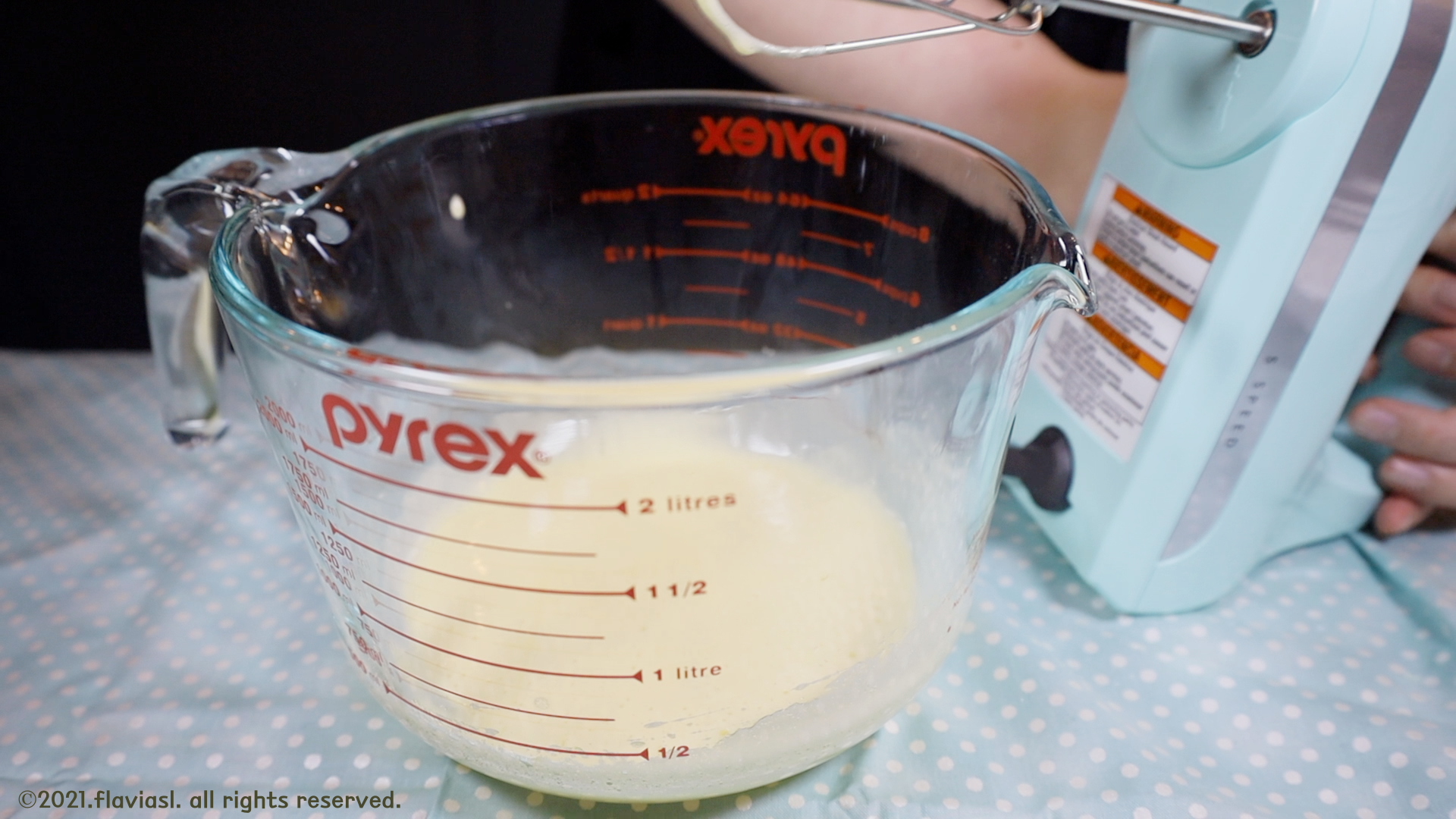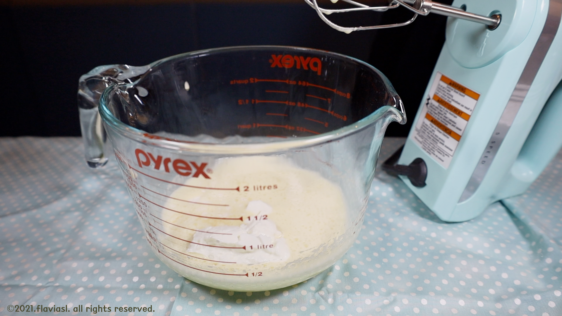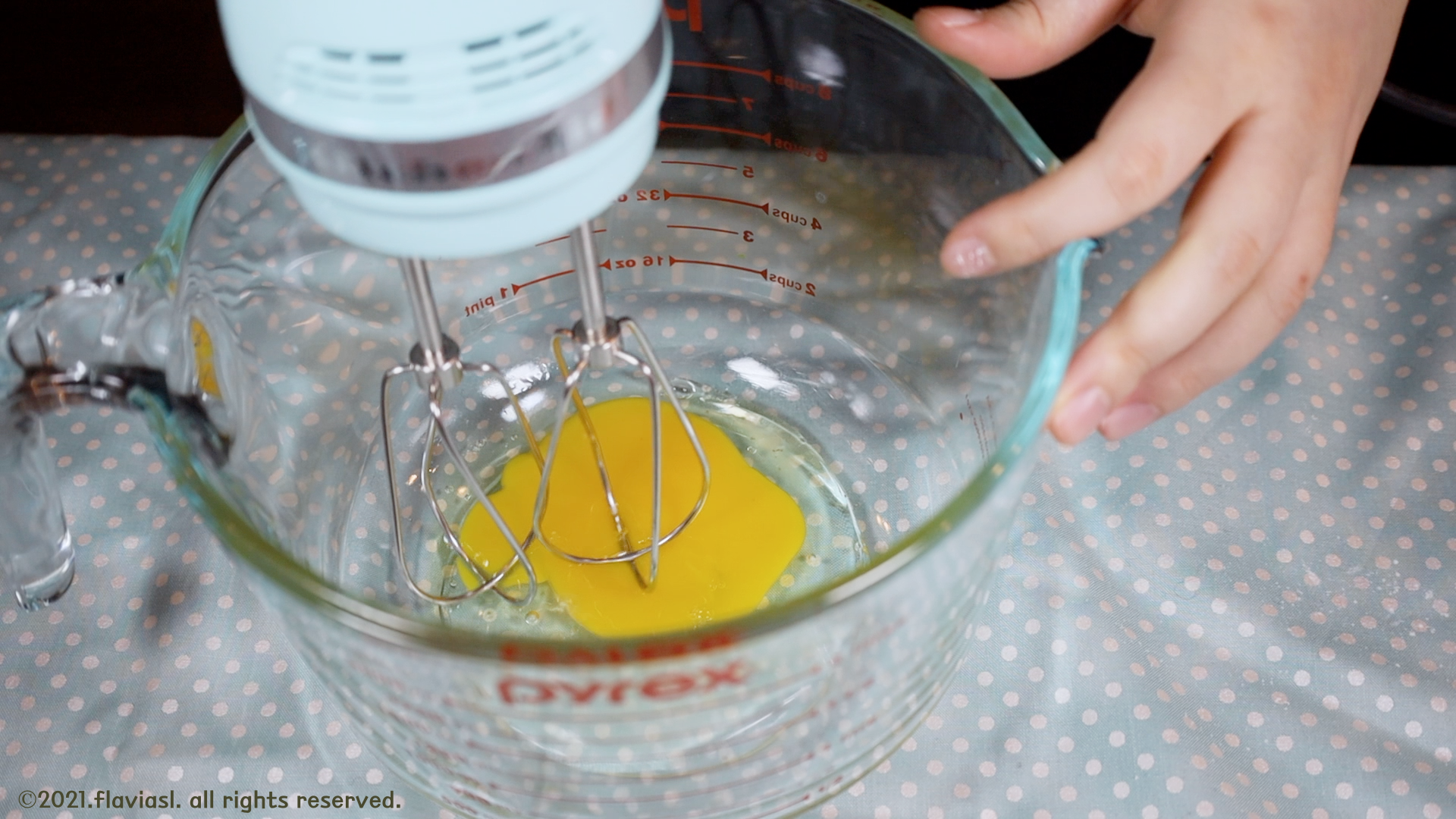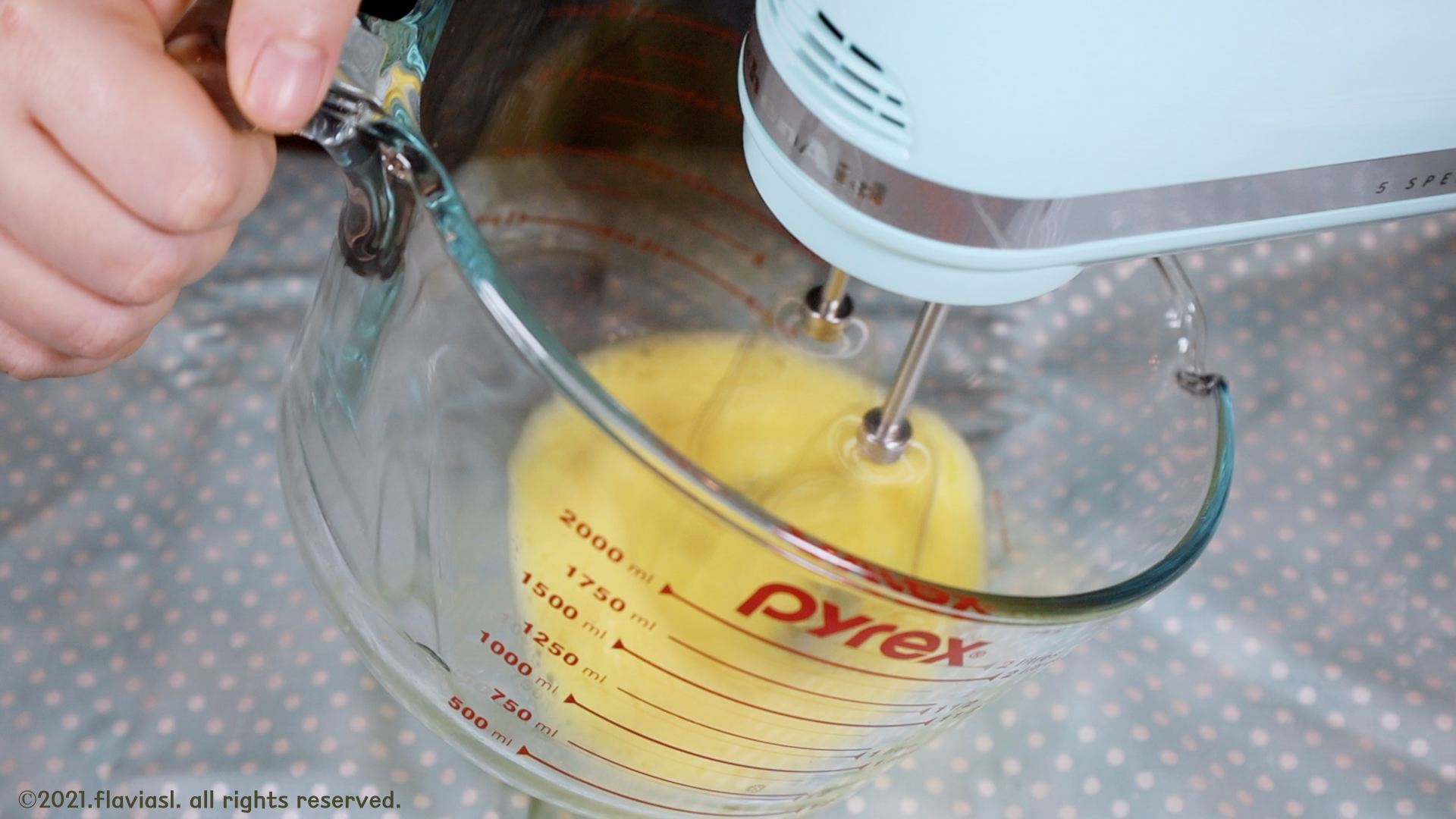 계란을 핸드믹서나 거품기로 열심히 저어주세요.