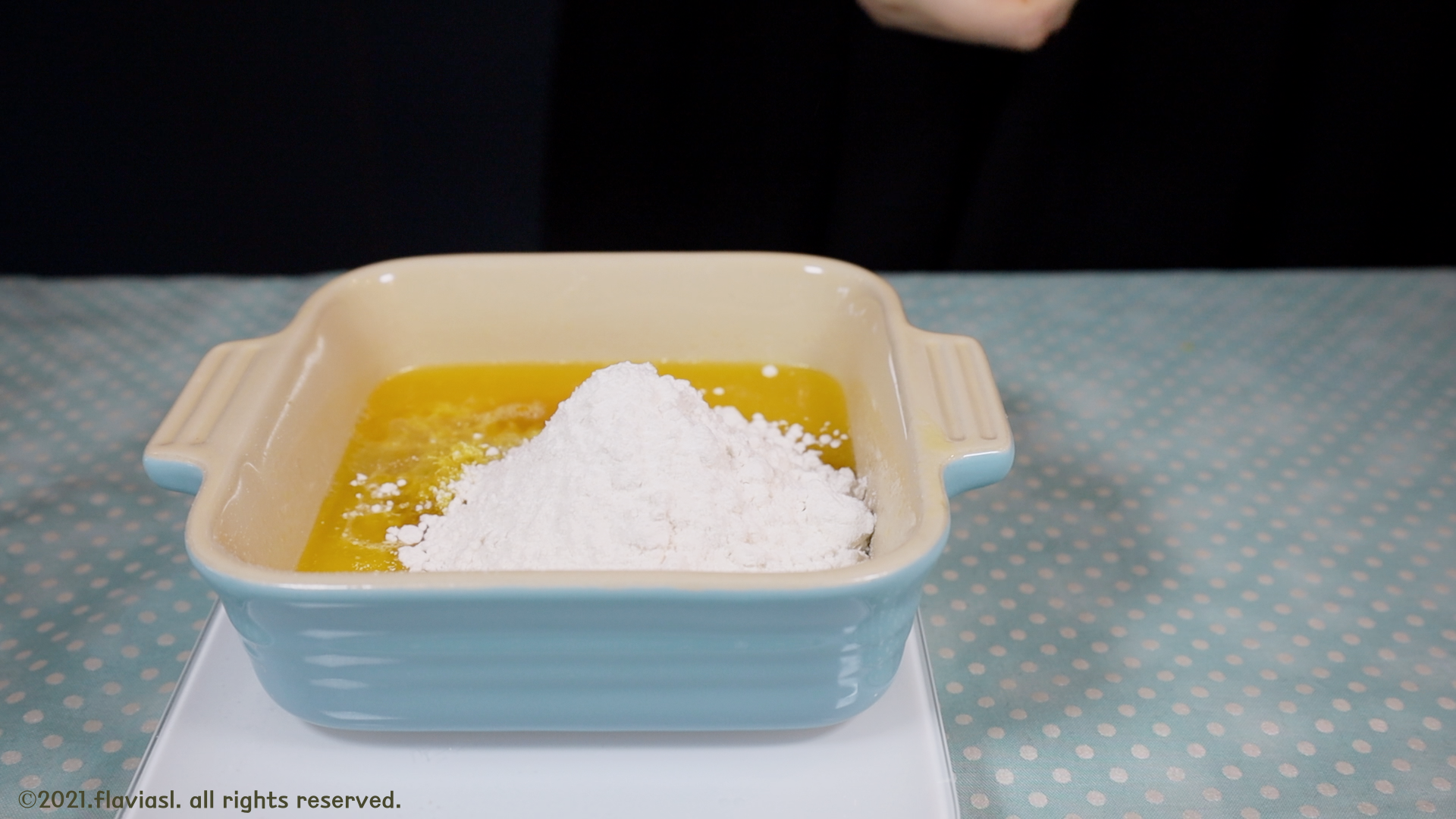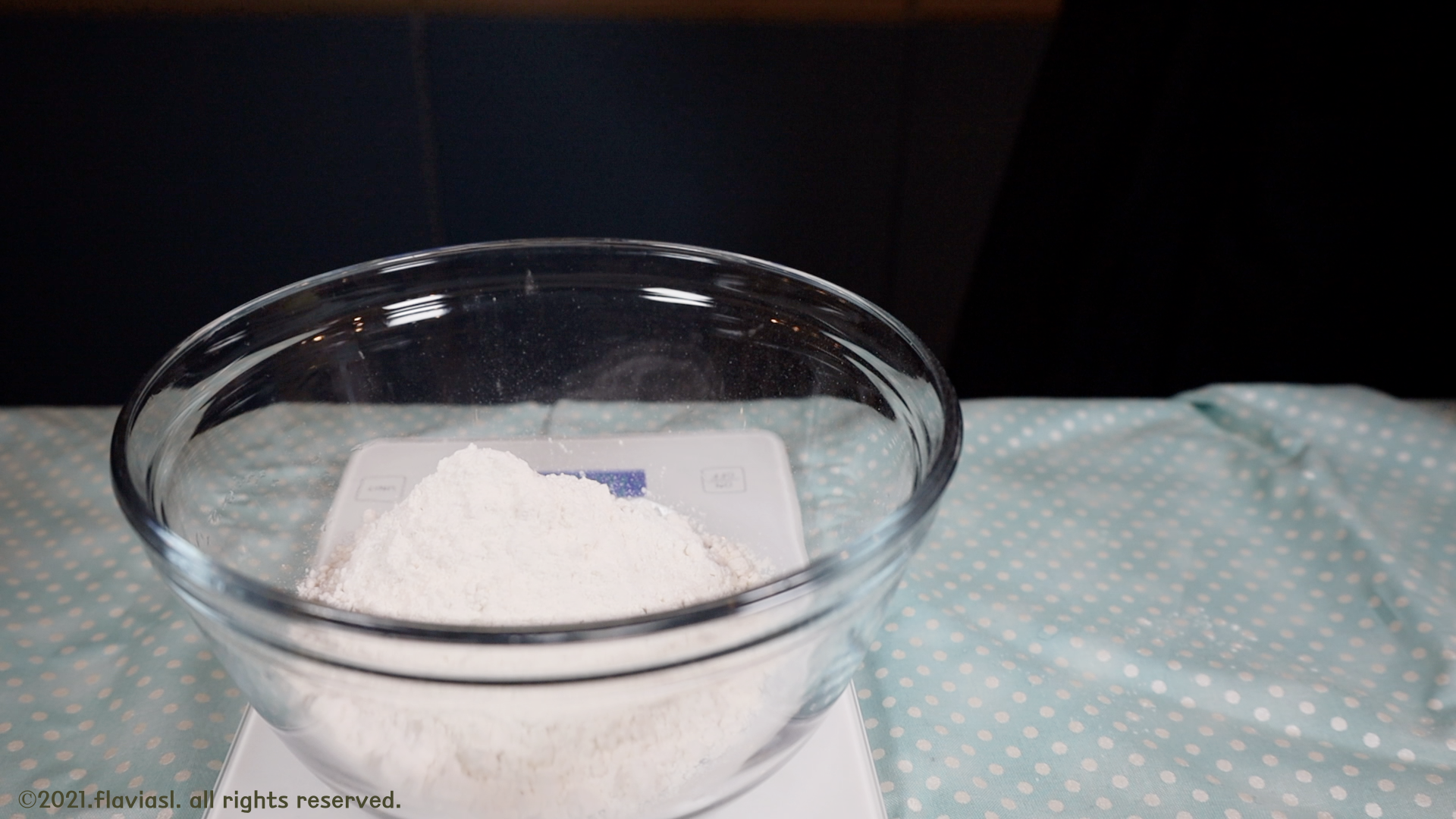 박력분, 소금, 베이킹파우더를 먼저 계량해주세요.