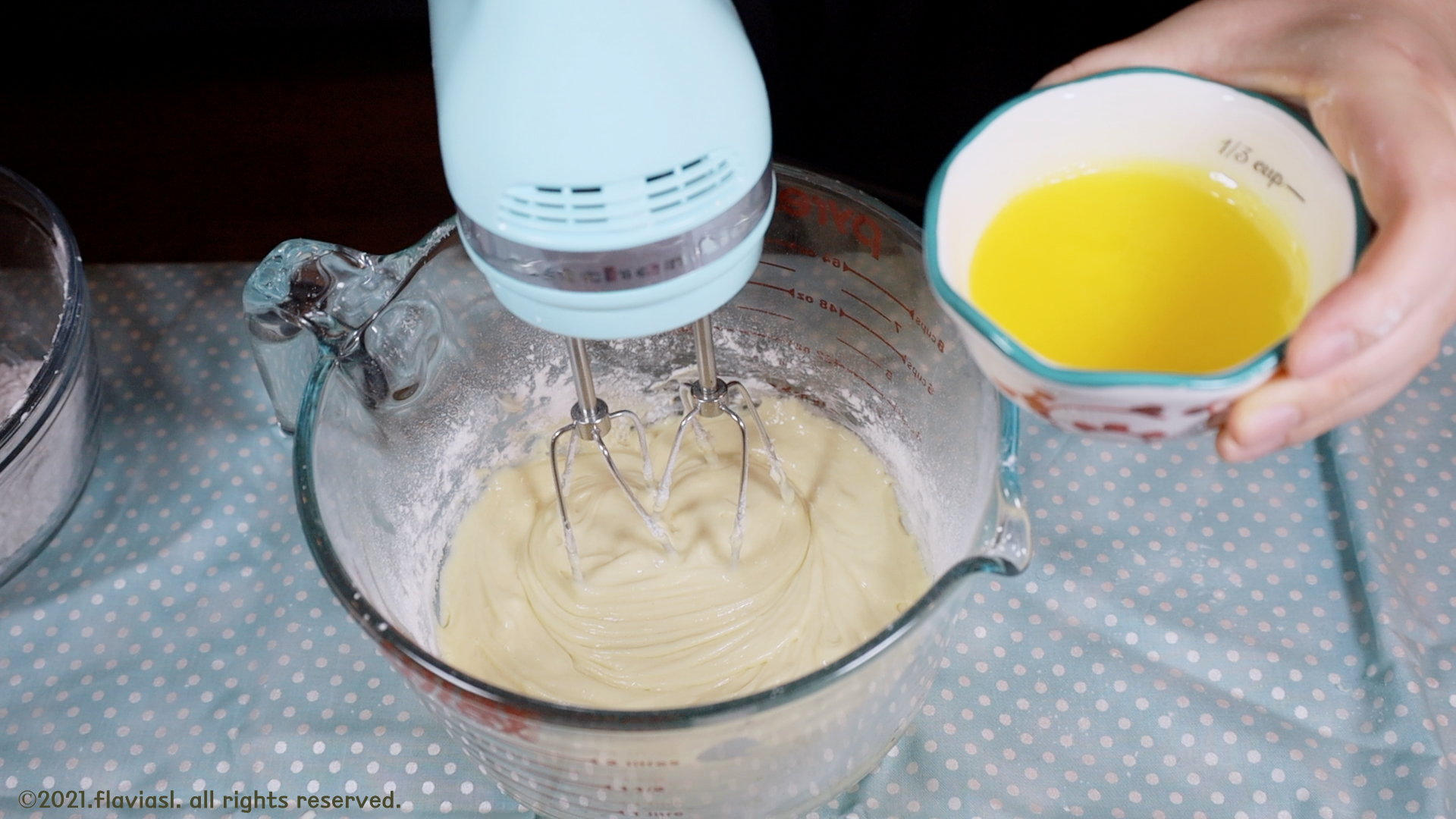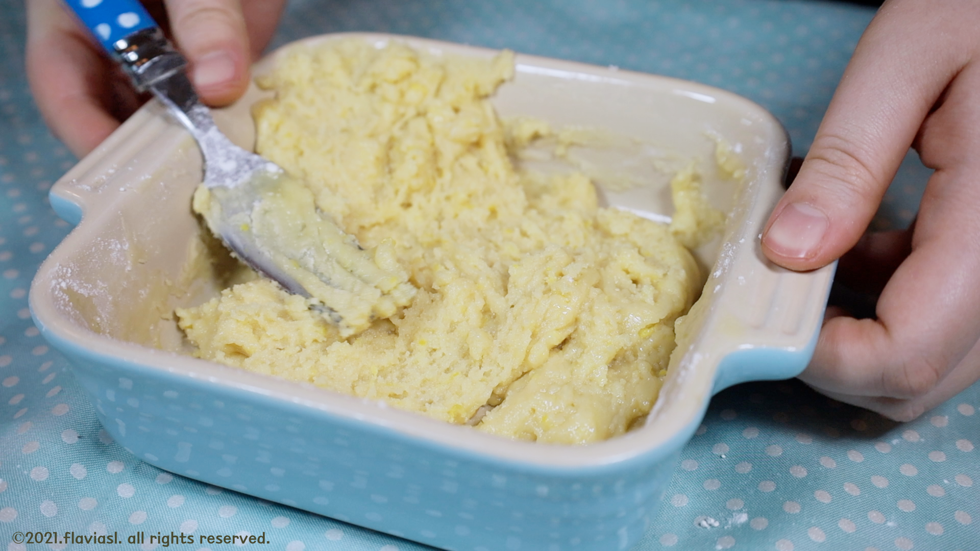 마른 가루가 보이지 않을 때까지 열심히 섞은 뒤